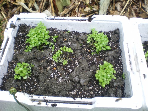 麓の自宅で種から植えたスイートバジルが苗になりました。