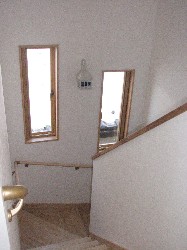 2階への階段は安全な廻り階段・・・もちろん手摺付です。
