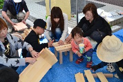 親子木工教室・・・家族で本箱や椅子、すのこなどを作っています。