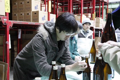 朝3時頃よりお酒が絞られ、6時30分頃より瓶詰作業が行われました。