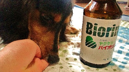 ちなみに、我が家にはもう一人バイオリンクの大ファンがいました。(お留守番のご褒美にあげています)ミニチュアダックスのサム蔵です。