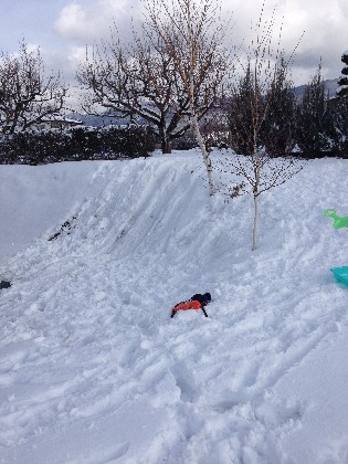 先日は、4歳の娘が雪の斜面を滑り降りてきて、
