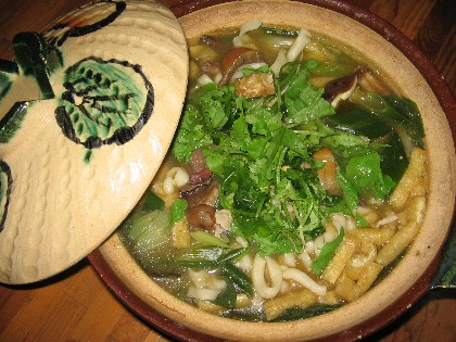 そこへ手打ちうどんを入れて煮込むと、特製きのこ鍋のでき上がり!家族みんなで美味しくいただきました!