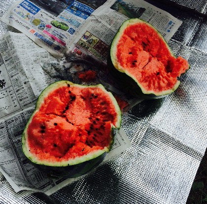 川で冷やしておいたすいかは冷たくて、甘くて最高でした!!