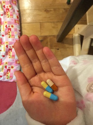 ただ今、6歳の娘。少し大きめに見えるカプセルも、独特の味がするBCExも問題なく飲めます。