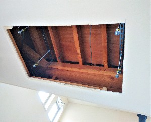 通常の壁掛け式のエアコンの方が種類も多く、埋め込み式よりも安いのですが、新たに壁に穴を開けないといけませんし、今の壊れたエアコンはそのまま放置することになります。我が家の1階は、薪ストーブを設置してあることもあって、ダイニングキッチンからリビングまでワンフロアで2階まで吹き抜けになっていますので、1階だけ用としても20畳以上の大型のエアコンが必要ですし、効率なども踏まえて当時の設計士さんがビルトインタイプを選択してくれた筈です。