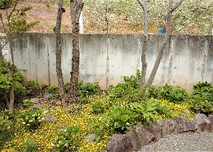 写真は、最初のクリスマスローズが3月下旬、次の花壇が4月中旬、そして最後の3枚は4月下旬、雑木林ガーデン樹下のクリスマスローズと黄色いカバープランツのポテンチュラと(コンクリート塀の向こうに白い花が満開のリンゴ畑が見えます)、芽吹きが始まった芝生ガーデンに植えてある紅白のハナミズキの様子です。