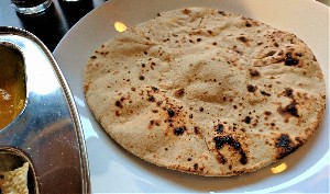 更に、それぞれに付いてくる、ひよこ豆の粉を焼いた煎餅の様なのがパパドで、崩してご飯と一緒に食べるとパリパリして違った食感が楽しめるとのこと(個人的にはセットのライスや苦手なヨーグルトとかデザートも要らないので、今度からはカレー2種類とチャパティ数枚だけでイイかな)。