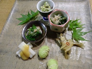お品書きはなく、若い中居さんが一つずつ配膳される鉢毎の料理を丁寧に説明していただいたのですが、老化現象故か殆ど覚えられず、僅かな記憶と写真とでご勘弁ください(内容が違っていたらスイマセン)。