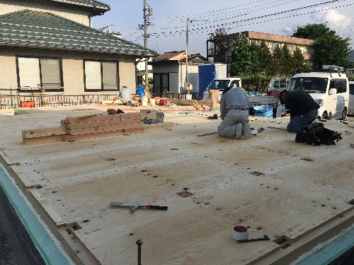 塩尻市広丘郷原の高性能住宅で土台敷きでした。