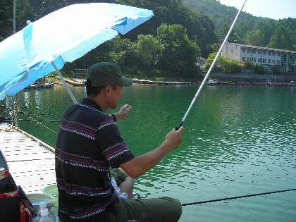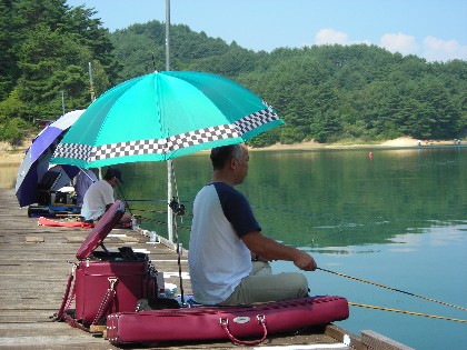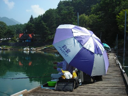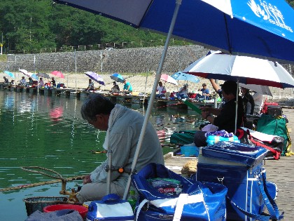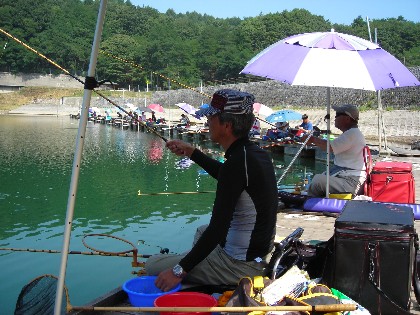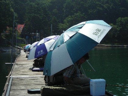 時折吹く風に,なんとなく秋を感ずるような,そんな美鈴湖周辺の陽気です。絶好の釣日和となりました。