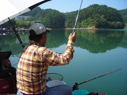 今日は,お盆休みの最終日となりました。県内外から38人のへら鮒釣のお客様にお出で頂き,また,子供さんのファミリー釣りのお客様も大勢お見えになりまして,大盛況でした。