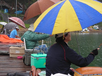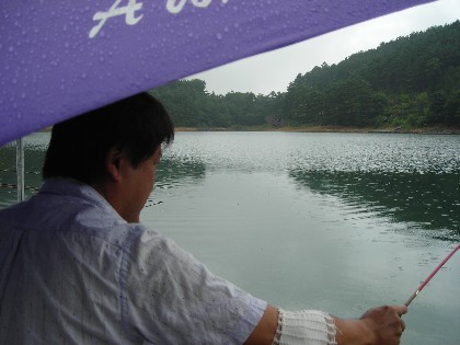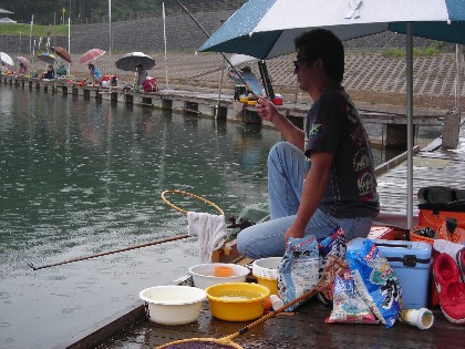 今日は、朝から久しぶりの雨に恵まれましたが、釣人にはやっかいな雨となりました。しかしながら県外からのお客様が大勢お越しいただいて、総勢16名となりました。