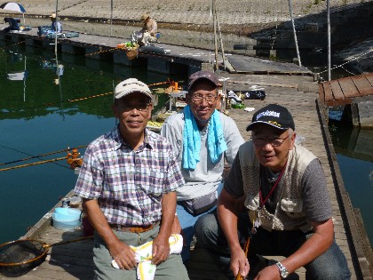<ウテナ下桟橋:3人>昨日はレイク前ポイントで楽しまれた東京の松本さん以下3人組の方です。今日は,午前10時に早上がりされて,お帰りになりました。