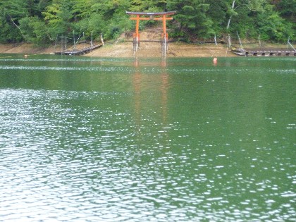 <雨の美鈴湖・鳥居,レイク美鈴>