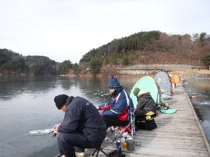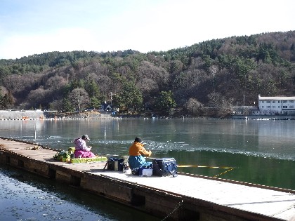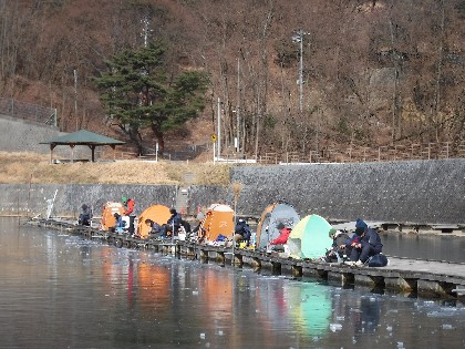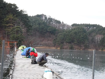 午前中曇りでしたが、昼位から晴れて少し暖かく感じられる天気となりました。そんな中、ワカサギ釣りで51人、ヘラ鮒釣りで6人の御客様にお越し頂きました。