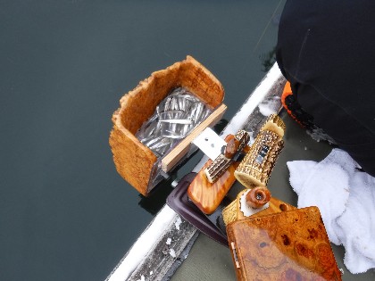 ①桟橋入り口の鎖に荷物を置く《一人一容代表者の場所取り禁止》(ワカサギ・へら鮒共通)