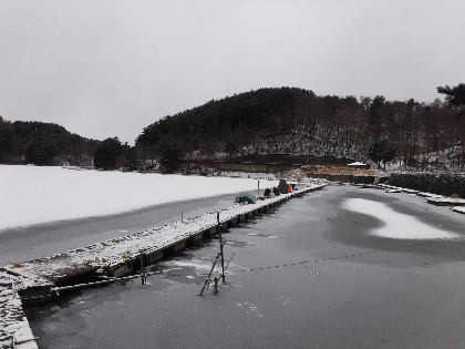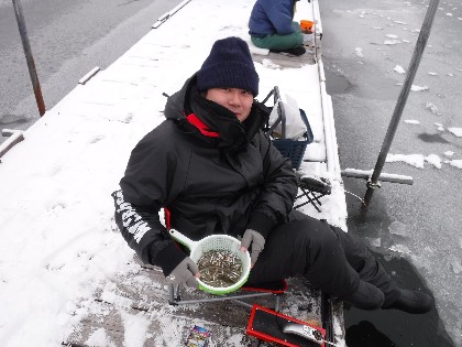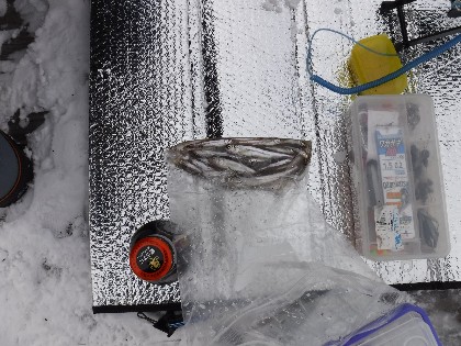 昨日の雪で湖面の氷の上に雪がつもり絶好の釣日和でした。