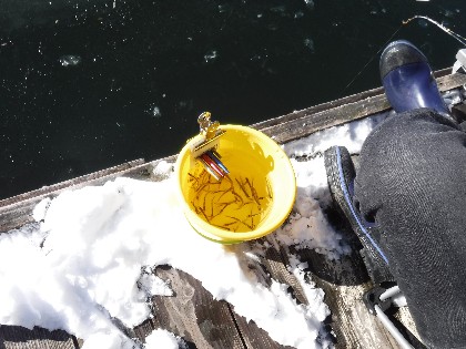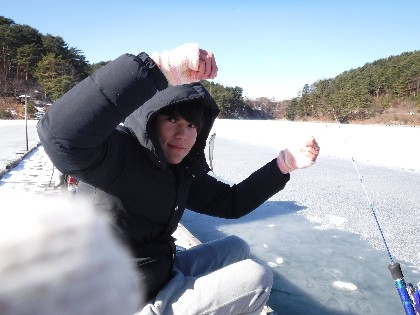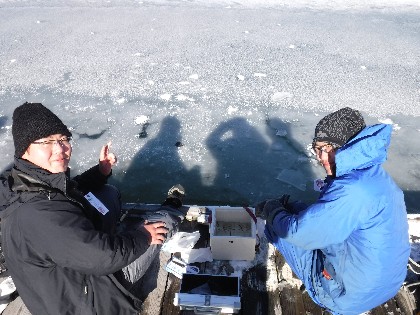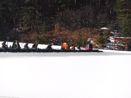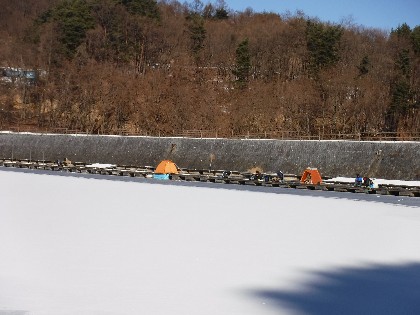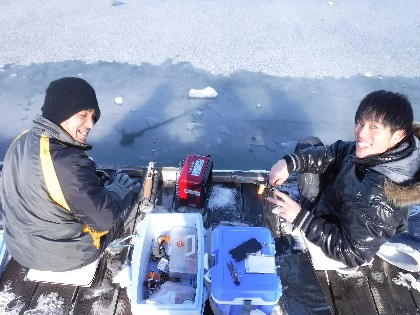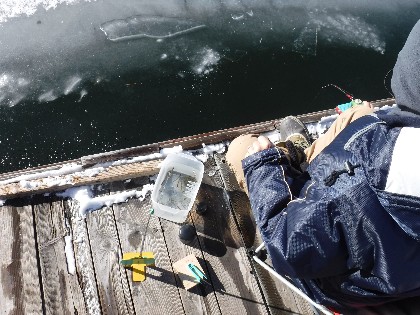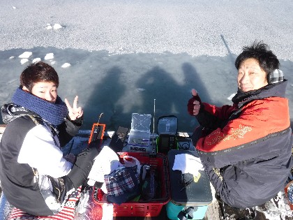 今日は風もなくて絶好の釣日和で、30人程度のお客様がワカサギ釣りにお見えになりました。