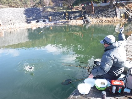 今日は早朝冷え込みましたが、天候に恵まれまずまずの釣り日和でした。そんな中、常連さんを主に13人のお客様にお越し頂きました。