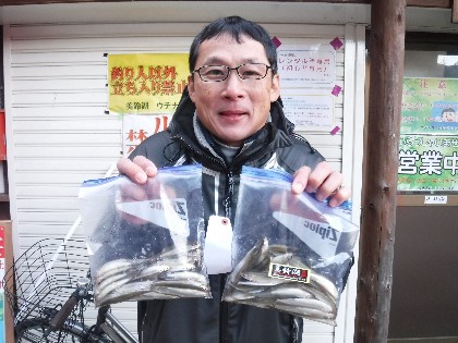 時間6枚(24枚)の方は、タナ:底(段底)、竿:18尺、エサ:ウドンセット