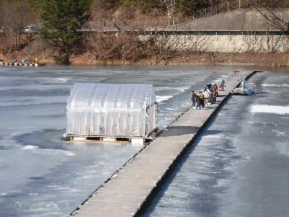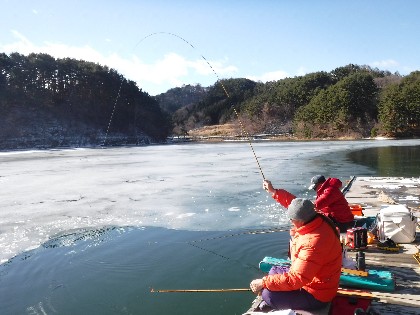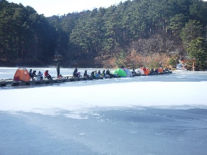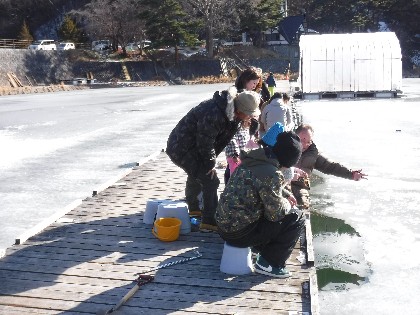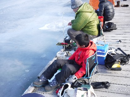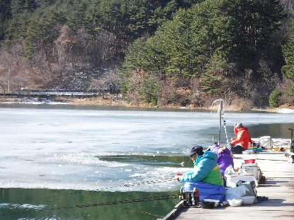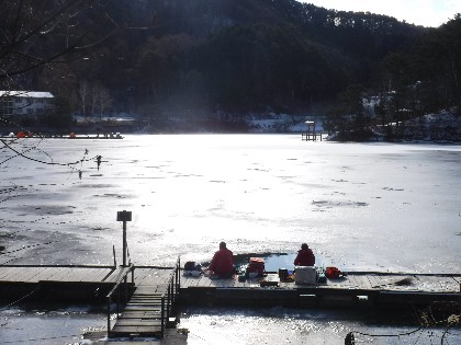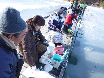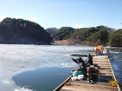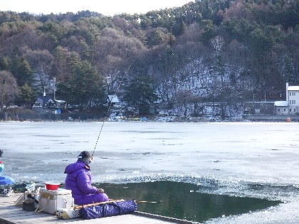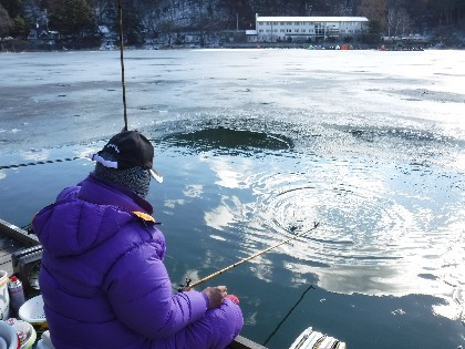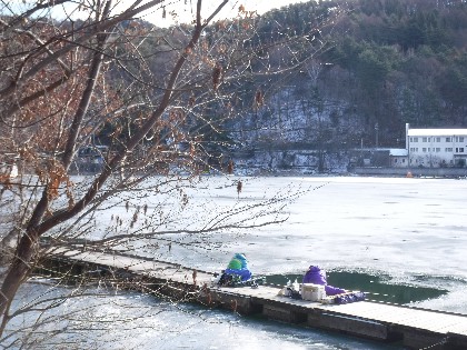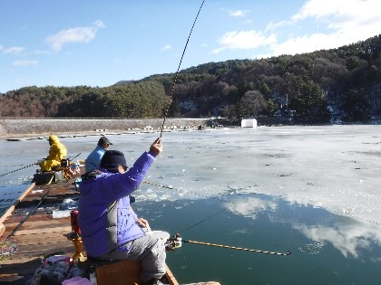 今日は早朝、昨日よりだいぶ暖かく感じられる天気でした。そんな中、わかさぎ釣りで70人、へら鮒釣りでは11人の、お客様にお越し頂きました。