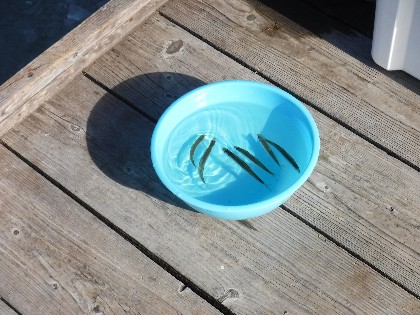 お客様からのコメント:先日15匹を釣り3人家族で、食しました形が大きいため(一匹8~10g)、十分おかずの一品になったとの事でした。