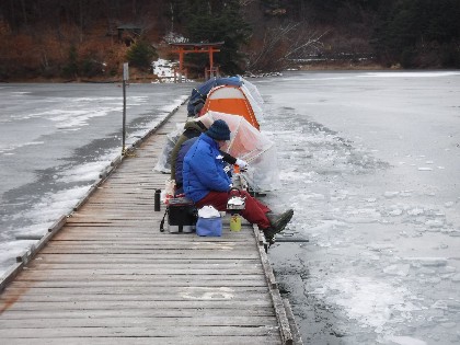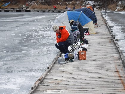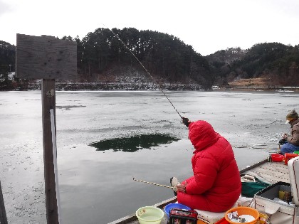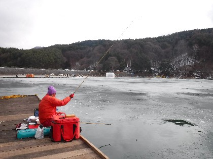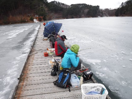 今日は昨日とうって変わり、真冬日となりました。そんな中、わかさぎ釣りで81人、へら鮒釣りでは7人のお客様にお越し頂きました。