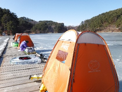 今日は、昨日より少し暖かく感じられる天気でした。そんな中、わかさぎ釣りで21人、へら鮒釣りでは3人のお客様にお越し頂きました。