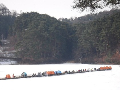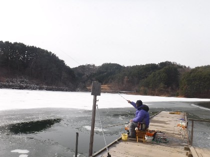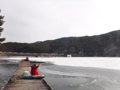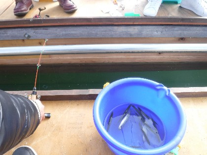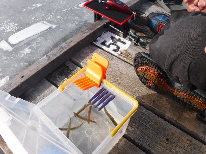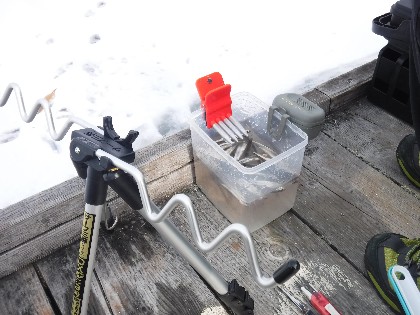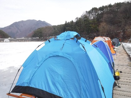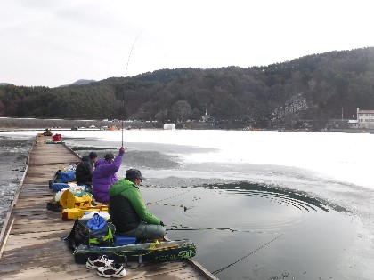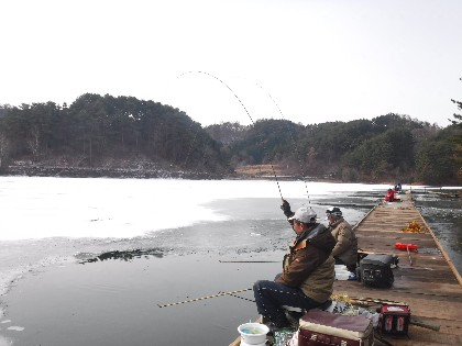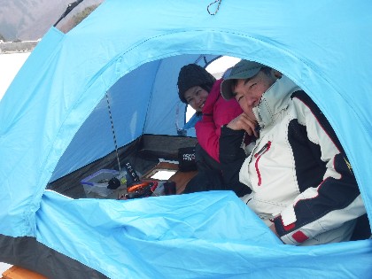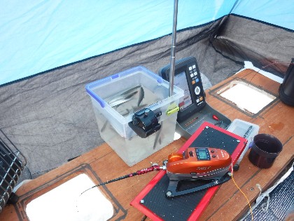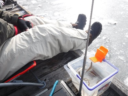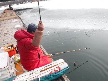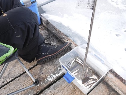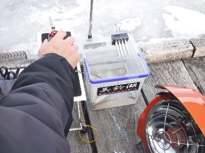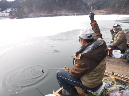 お客様のコメント:今は氷と水の境めくらいで、宙釣りだと時間10枚近くの釣果がある。