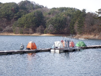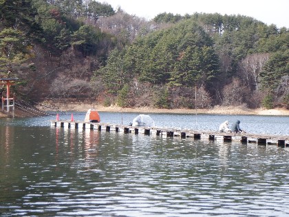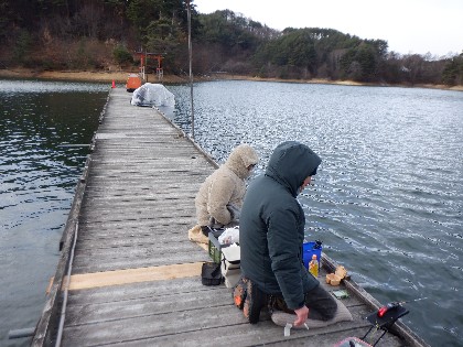 2023年12月22日(金) 天気:晴れ 午前10時(気温ー3度、水温4度) 今日の美鈴湖は、気温が上がらず真冬日の中、ワカサギ釣りは13人、ヘラ鮒釣りでは午後から、1人のお客様にお越しいただきました。 《今日の水位》