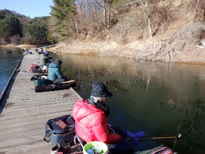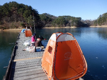 今日の美鈴湖は、よく晴れて穏やかな釣り日和でした。そんな中、ワカサギ釣りで43人、ヘラ鮒釣りでは5人のお客様にお越しいただきました。