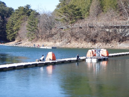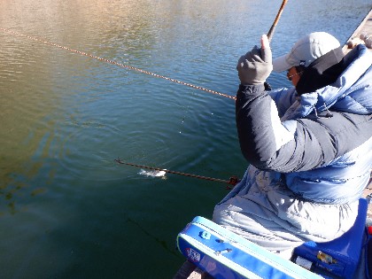 今日の美鈴湖は、よく晴れて気温が上がるけれど、風が吹き釣り難い中、ワカサギ釣りは28人、ヘラ鮒釣りでは、5人のお客様にお越しいただきました。