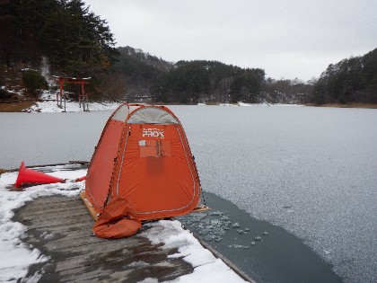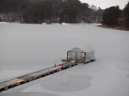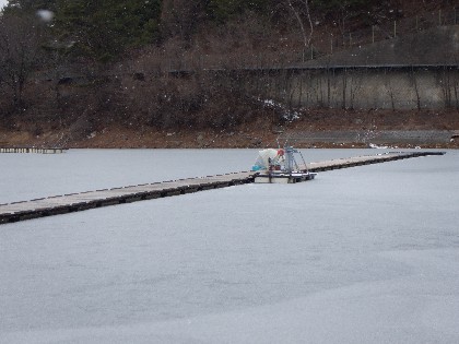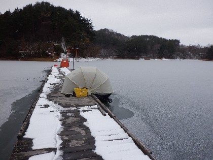 今日の美鈴湖は、午前10時過ぎから小雪が降る中、ワカサギ釣りは4人、ヘラ鮒釣りでは、1人のお客様にお越しいただきました。