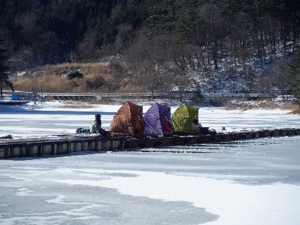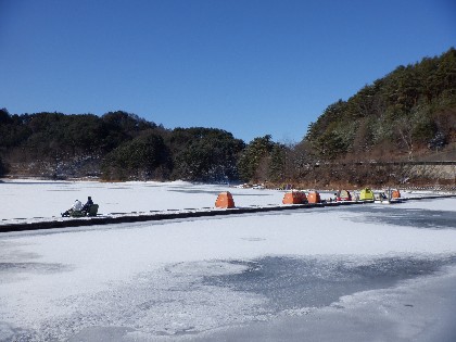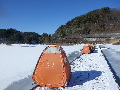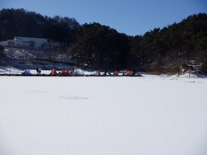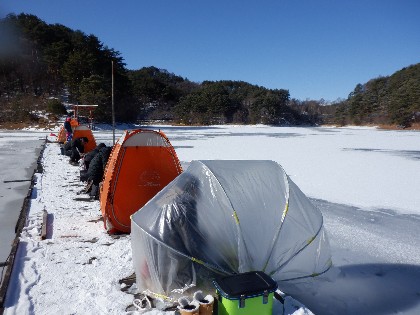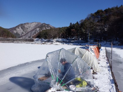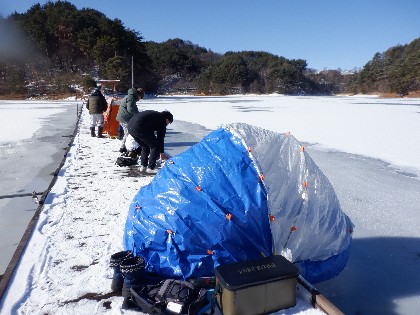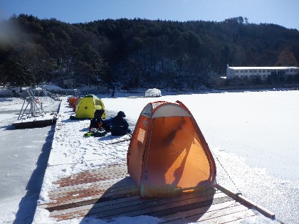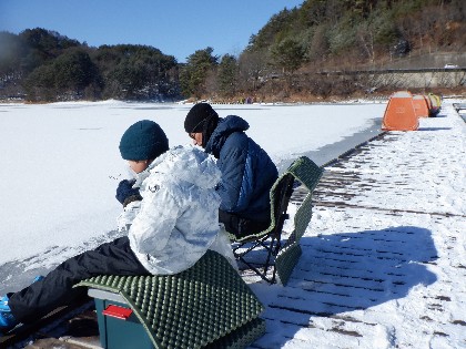 今日の美鈴湖は昨日と違い快晴の中、ワカサギ釣りは46人、ヘラ鮒釣りでは、5人のお客様にお越しいただきました。