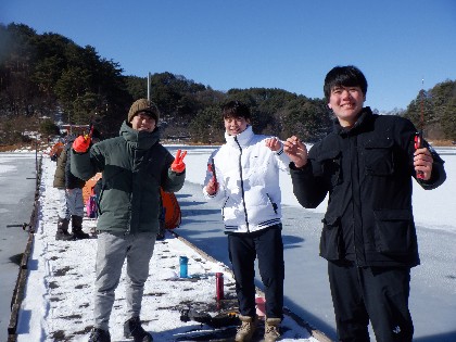 ワカサギ釣りは、殆どの方が10数匹から70数匹くらいの釣果でした。最高は109匹でした。