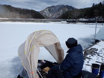今日の美鈴湖は午後になっても、気温が上がらず寒い中、ワカサギ釣りは11人のお客様、ヘラ鮒釣りでは、どなた様もいらっしゃいませんでした。