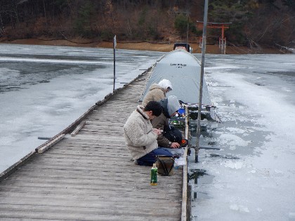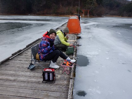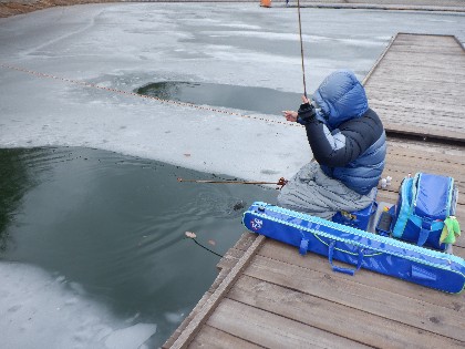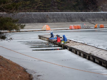 2024年1月19日(金) 天気:曇り午前10時(気温3度、水温3度) 今日の美鈴湖は、ワカサギ釣りで25人、ヘラ鮒は3人のお客様にお越しいただきました。 《今日の水位》