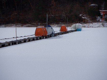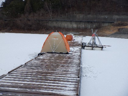2024年1月24日(水) 天気:雪 午前10時(気温-3度、水温2度) 今日の美鈴湖は真冬日でした、そんな中、ワカサギ釣りは12人のお客様にお越しいただきました。ヘラ鮒釣りでは、どなた様もいらっしゃいませんでした。 《今日の水位》