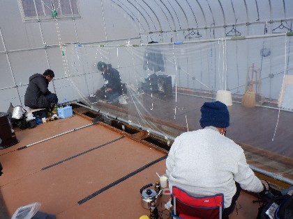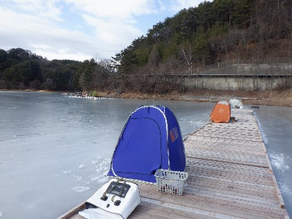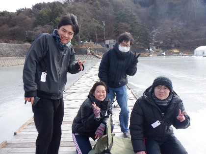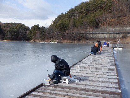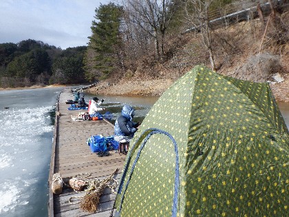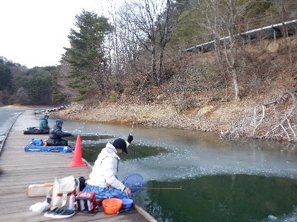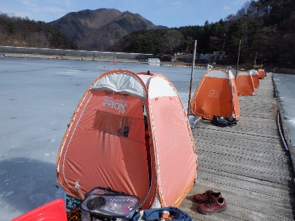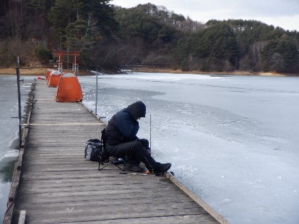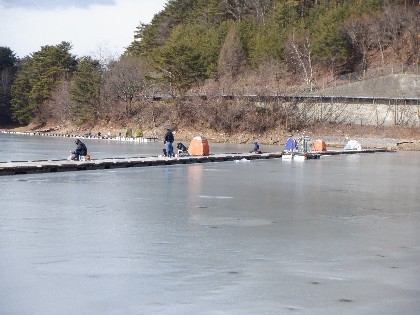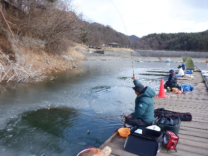 今日の美鈴湖は、気温が上がり暖かいけれど、風が吹き釣り難い中、ワカサギ釣りは21人、ヘラ鮒釣りでは、6人のお客様にお越しいただきました。