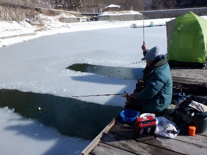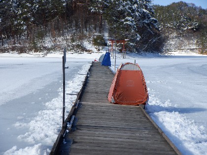 2024年2月9日(金) 天気:晴れ午前10時(気温-2度、水温2度 今日の美鈴湖は、穏やかな釣り日和になり、ワカサギ釣りが 15人、ヘラ鮒釣りでは2人のお客様にお越しいただきました 《今日の水位》