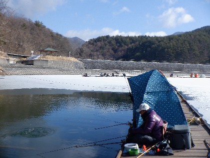 (えん堤桟橋・ワカサギ釣り)