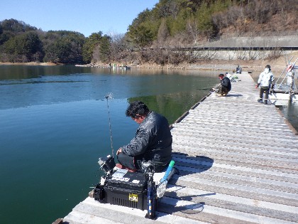 今日の美鈴湖はよく晴れて、昼過ぎには気温が8度位になりました。そんな中、ワカサギ釣りは41人、ヘラ鮒釣りでは、7人のお客様にお越しいただきました。