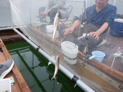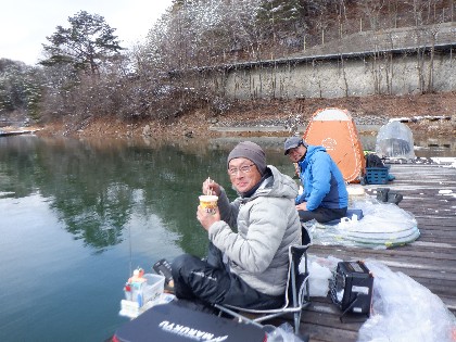 ワカサギ釣りは、殆どの方が数匹から60匹弱の釣果でした。
