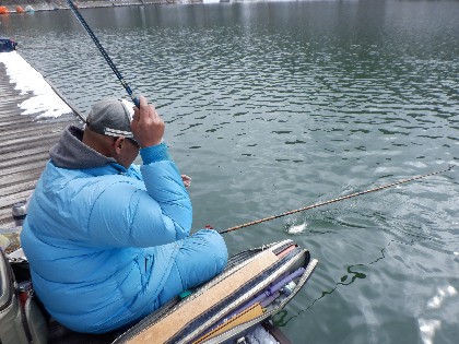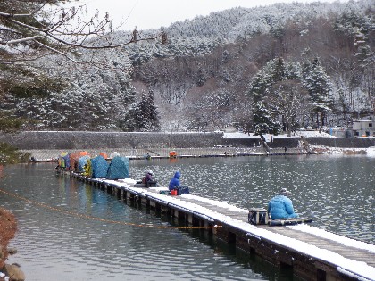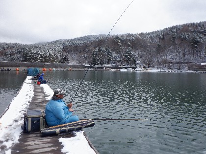 今日の美鈴湖は、昼を過ぎても気温があまり上がらず寒い中、ワカサギ釣りは57人、ヘラ鮒釣りでは、13人のお客様にお越しいただきました。