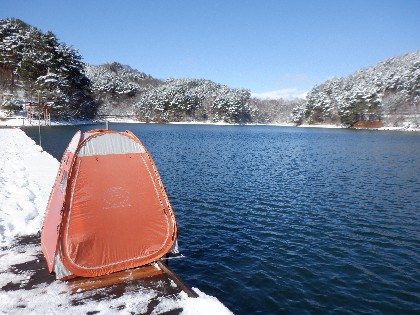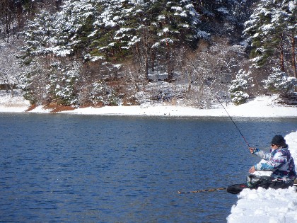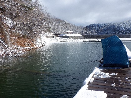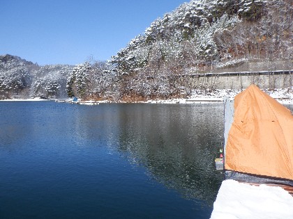 2024年2月26日(月)天気:晴れ午前10時(気温0度、水温4度) 今日の美鈴湖は、ヘラ鮒釣りで2人、ワカサギ釣りでも2人お客様にお越しいただきました。 《今日の水位》