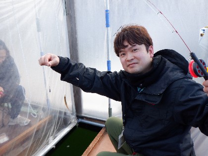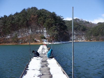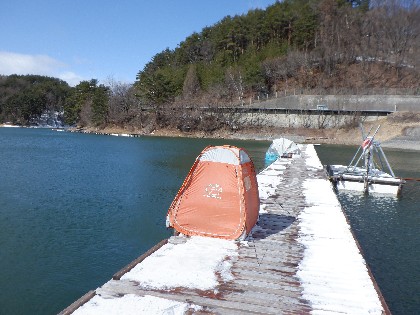 今日の美鈴湖は、よく晴れていても強風が吹き、温度が上がらず真冬日の中、ワカサギ釣りは初心者の方を主に17人、ヘラ鮒釣りでは2人のお客様にお越しいただきました。