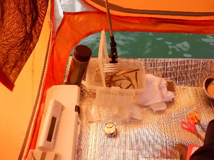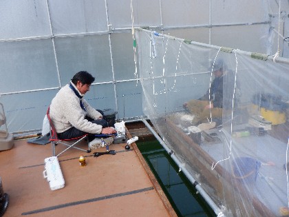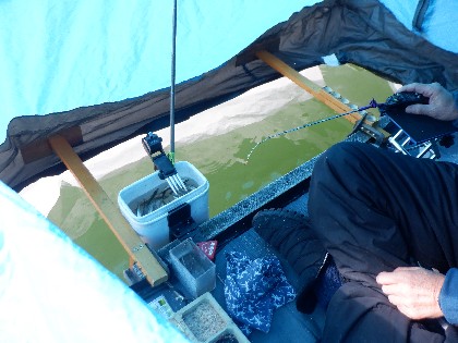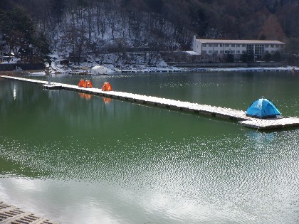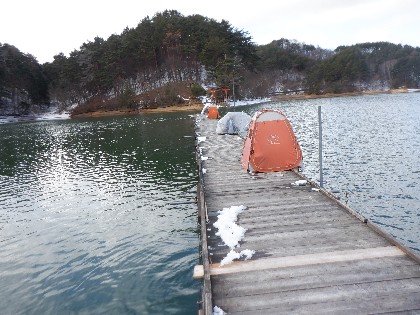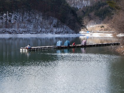 2024年2月28日(水)天気:晴れ午前10時(気温0度、水温4度) 今日の美鈴湖は、ワカサギ釣りが12人、ヘラ鮒釣りでは、6人のお客様にお越しいただきました。 《今日の水位》