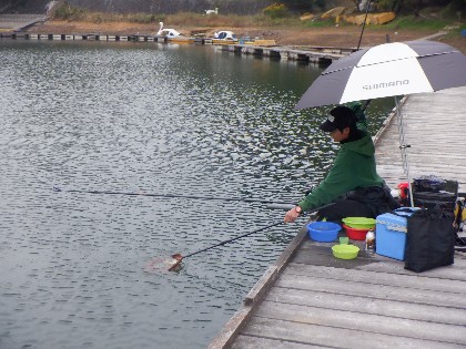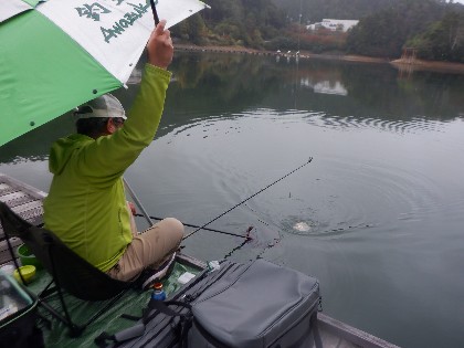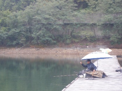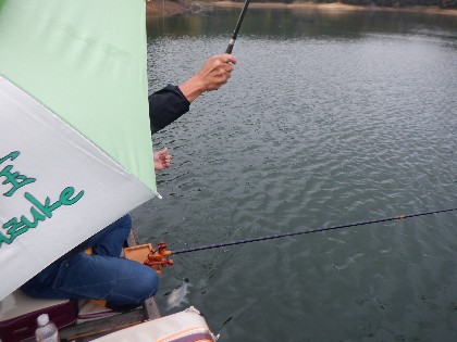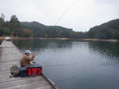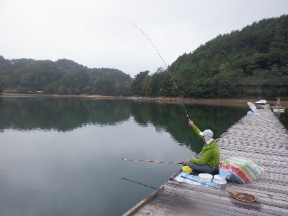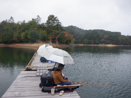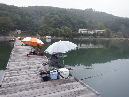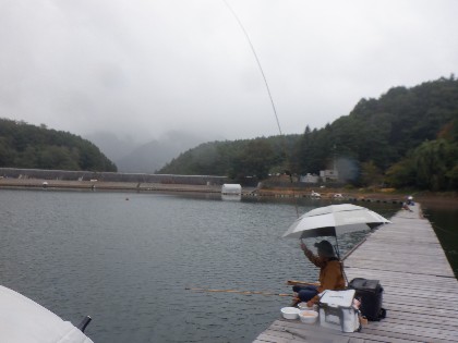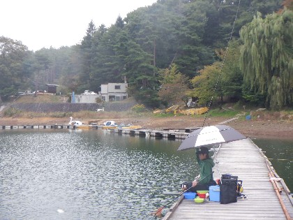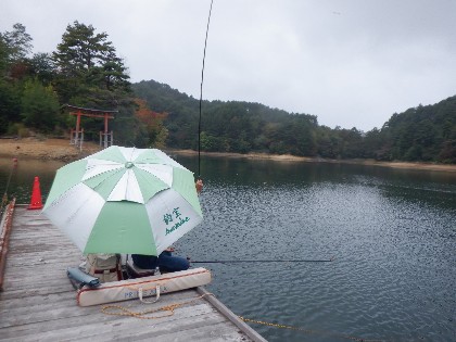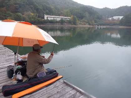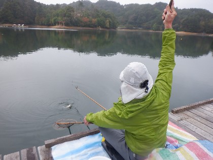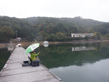 2025年10月13日(月) 天気:小雨後曇り 午前10時(気温18度、水温20度) 今日の美鈴湖は、朝のうち小雨が降る中、県内外から11人のお客様にお越しいただきました。 《今日の水位》