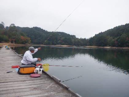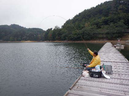 2025年10月14日(火) 天気:曇り後雨 午前10時(気温15度、水温19度) 今日の美鈴湖は、微風でも肌寒さを感じる中、2人のお客様にお越しいただきました。 《今日の水位》